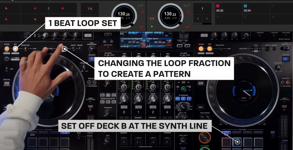 PLAYING DIFFERENT HOT CUE PATTERNS BETWEEN THE 2 DIFFERENT CHANNELS: Ping-pong between the two pitches in time with the beat.
