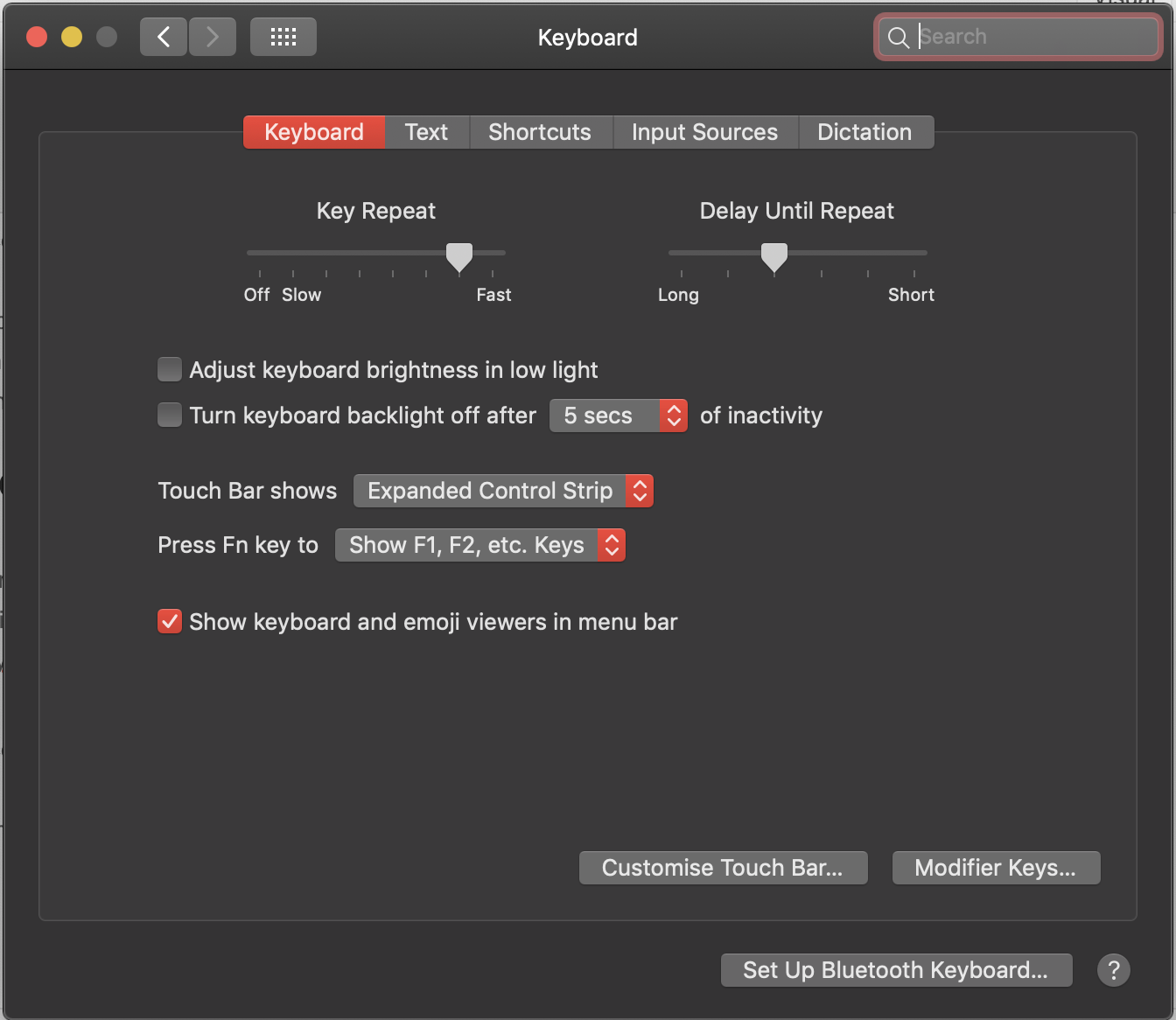 - Change the touch bar shows to “Expanded control strip”